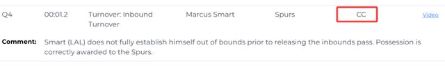報告指出,比賽最後0.4秒,馬刺的約翰遜是球出界前最後觸球的球員,球權(quán)是屬於湖人的,但裁判把球權(quán)錯判給馬刺,認(rèn)為是斯馬特最後觸球。這次錯判,湖人吃虧,馬刺獲利。