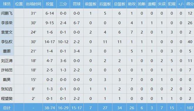 此役李弘權(quán)大殺四方,投籃17中14,其中三分球12中10,爆砍40分11板大號兩雙,籃筐對他來說就如大海那般寬闊。