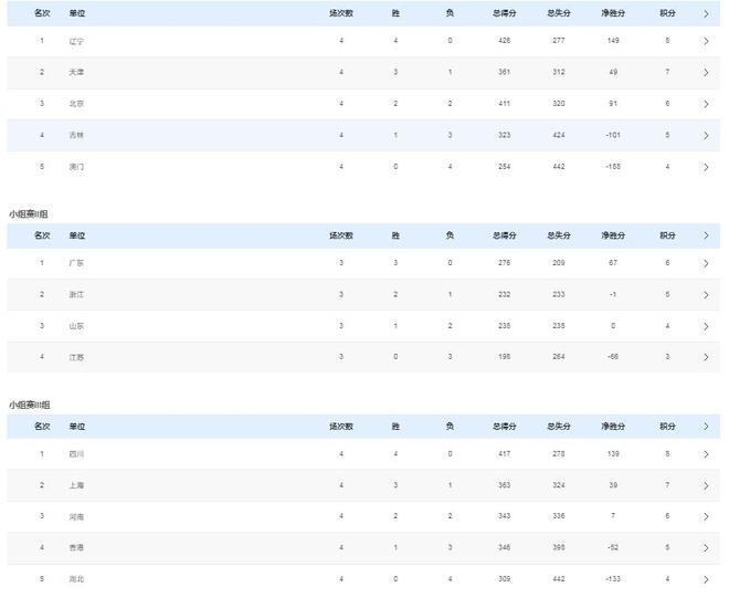 Ⅰ小組的小組第三名是北京隊(duì),去掉和小組墊底的澳門(mén)隊(duì)比賽的凈勝分後,北京隊(duì)的凈勝分是+31分;Ⅱ小組的第三名是山東隊(duì),這個(gè)小組隻有四支球隊(duì),不用經(jīng)過(guò)另外的計(jì)算,山東隊(duì)的凈勝分就是是0分;Ⅲ小組的的小組第三名是河南隊(duì),去掉和湖北隊(duì)比賽的凈勝分後,河南隊(duì)的凈勝分是-13分。也就是說(shuō),北京隊(duì)和山東隊(duì)是兩個(gè)成績(jī)最好的小組第三名,兩支球隊(duì)也攜手晉級(jí)八強(qiáng)。