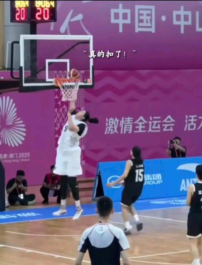 動作不算炸裂,甚至難以稱之為爆扣,落地也略顯謹慎,但這一扣,讓全場瞬間沸騰。裁判忘瞭吹哨,隊友忘瞭回防,連對手都停下腳步。這不是娛樂性質(zhì)的全明星花活,而是正規(guī)比賽裡的實戰(zhàn)扣籃,中國女籃史上第一次。