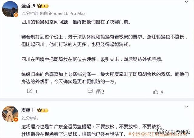 媒體人"盛哲"發(fā)文點(diǎn)評(píng):“四川的輪換和空間問(wèn)題,最終把他們擋在瞭決賽門(mén)前。