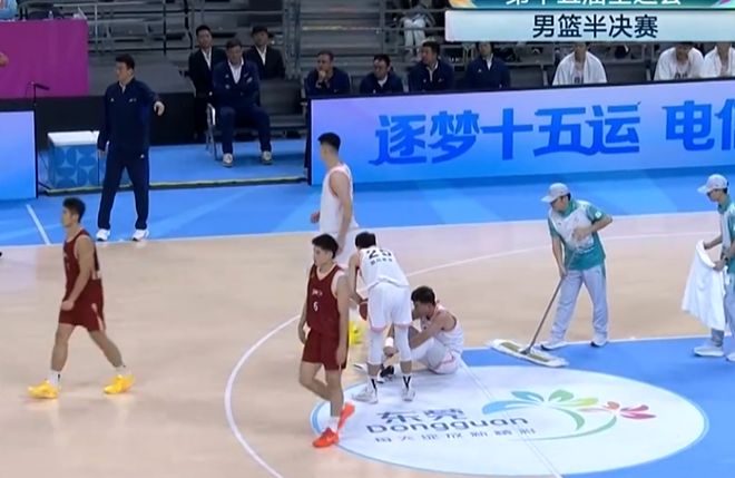第三節(jié)王奕博擠過防守時倒地,膝蓋撞瞭一下。