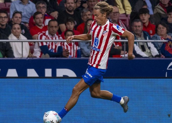第39分鐘,馬競終于進(jìn)球了。小西蒙尼突入禁區(qū)右側(cè),隨即把球分給阿爾瓦雷斯。阿爾瓦雷斯停球后凌空抽射,皮球應(yīng)聲入網(wǎng)!身價(jià)1億歐元的阿爾瓦雷斯本賽季14場打進(jìn)9球。隨后,格列茲曼補(bǔ)射破門,但因?yàn)樵轿槐淮档?。半場結(jié)束,馬競1-0領(lǐng)先圣吉羅斯聯(lián)合。