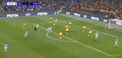 開場之后,曼城依靠主場和實力的雙重優(yōu)勢,進攻端壓著打,多特只能退縮陣型防守,但還是守不住。