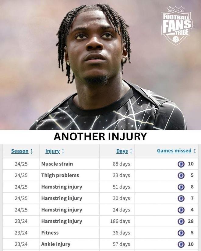 拉維亞加盟切爾西後已遭遇9次受傷,且從未打滿90分鐘
