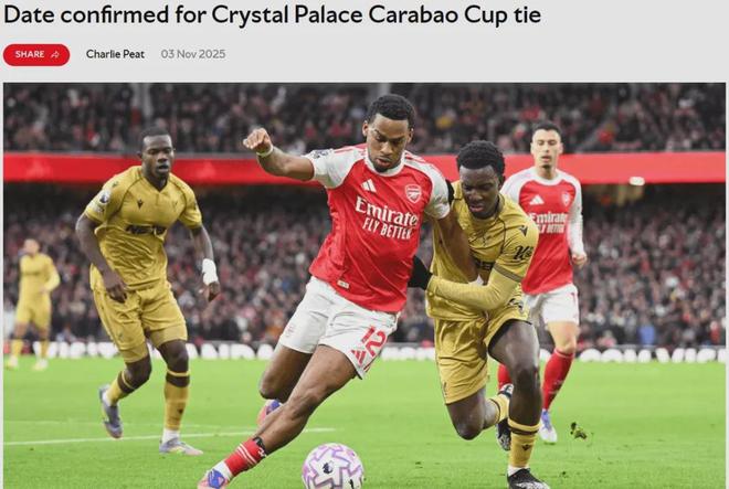 官方:阿森納宣佈主場對水晶宮的聯(lián)賽杯四分之一決賽被安排在瞭12月23日周二進行。