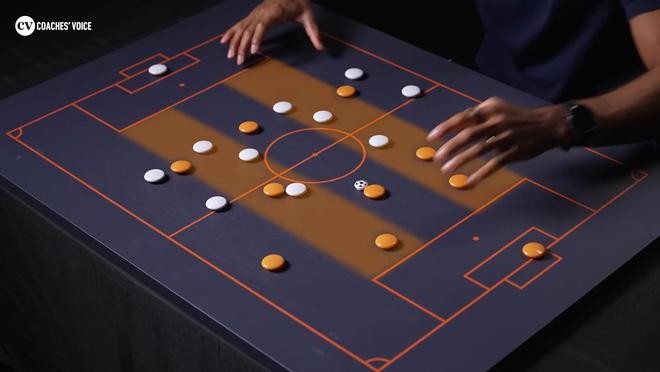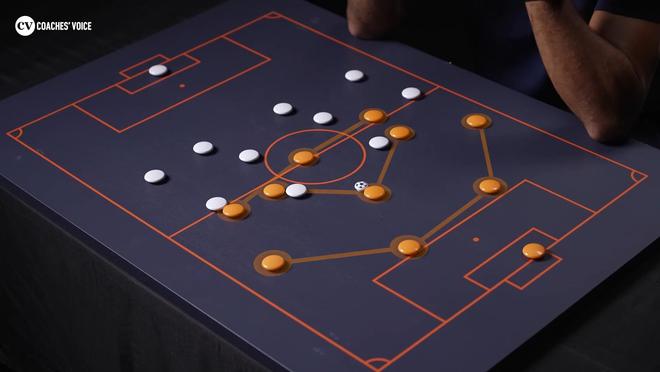 他要求我們始終保持斜線傳球和斜向接球的意識(shí)。這樣你在接球時(shí)就能直接完成下一腳傳球,或進(jìn)行一對(duì)一,從而為球隊(duì)創(chuàng)造優(yōu)勢(shì)。占據(jù)正確的區(qū)域能讓你更清楚地看到對(duì)手的站位。我們必須時(shí)刻去尋找他們背后的“肩部空間”。稍微前提一點(diǎn),就能在有利位置接球、傳出致命一腳。