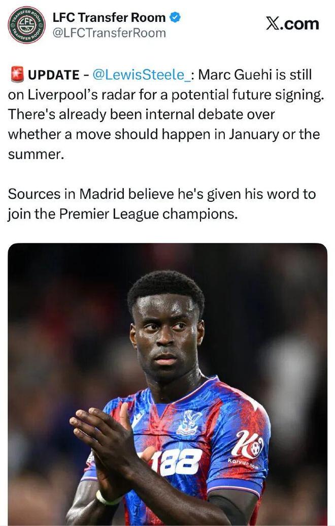 斯蒂爾:格伊仍然在利物浦的雷達(dá)上,仍可能在未來簽下他,至于轉(zhuǎn)會(huì)在1月還是夏季進(jìn)行,內(nèi)部已經(jīng)存在爭(zhēng)議。而來自馬德里的消息人士認(rèn)為,他已經(jīng)給了利物浦承諾。