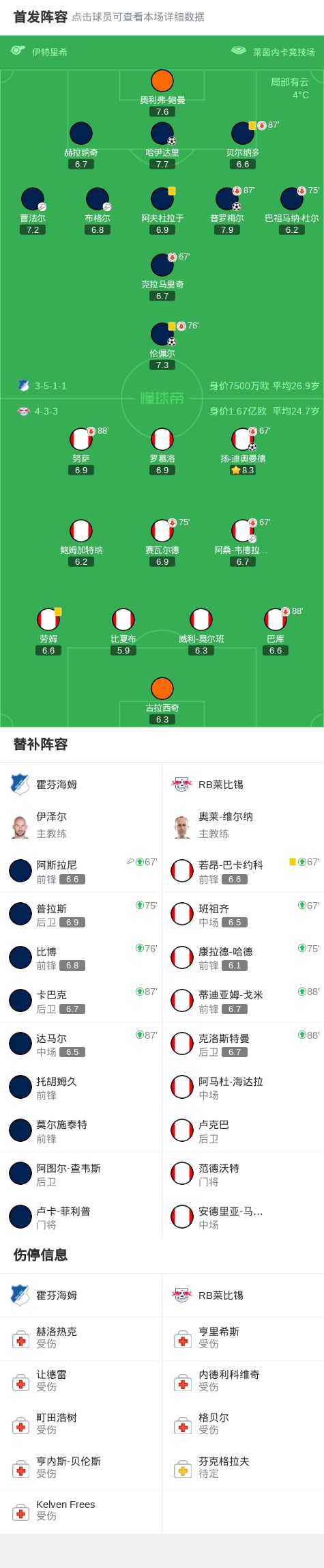 霍芬海姆3-1萊比錫,哈伊達(dá)里、倫佩爾、普羅梅爾破門(mén)