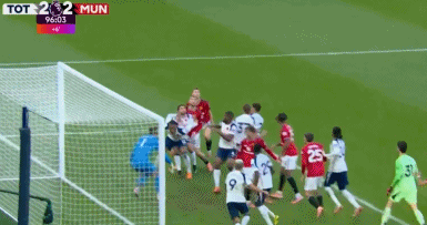 然而,熱刺球員的香檳卻開(kāi)早瞭。補(bǔ)時(shí)最後一分鐘,曼聯(lián)獲得角球,德裡赫特頭球沖頂破門(mén),幫助曼聯(lián)神奇地扳平瞭比分。