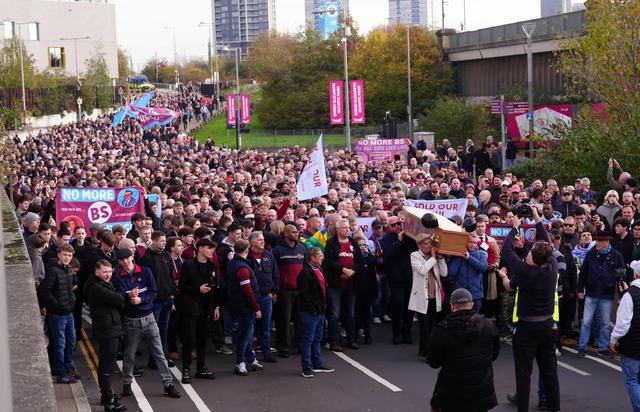太陽報:西漢姆球迷抬著棺材遊行,抗議俱樂部管理層