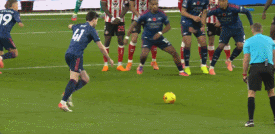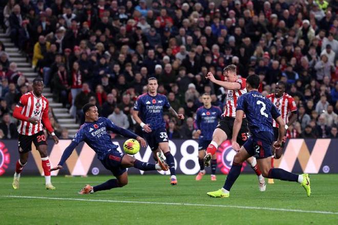 第45+2分鐘,阿森納將球傳到禁區(qū)內(nèi),薩卡頭球回做,無人盯防的薩利巴一腳抽射打高,錯(cuò)失扳平良機(jī)。