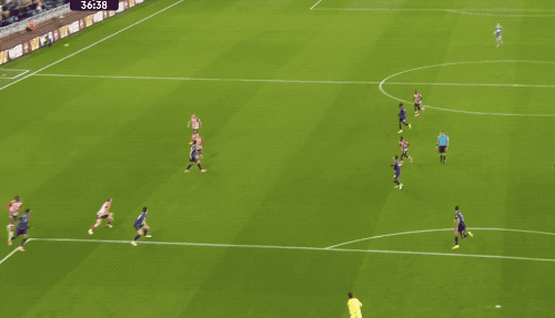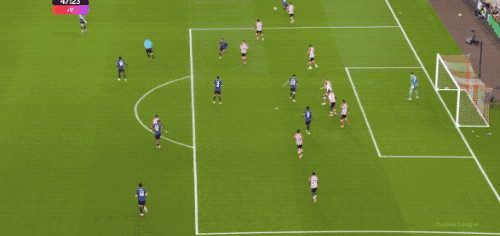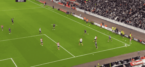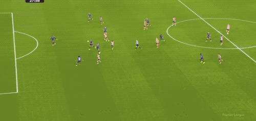 接下來的10分鐘,場面有些膠著,但場上的天平在第36分鐘發(fā)生變化,桑德蘭利用簡單的長傳沖吊破門得分。