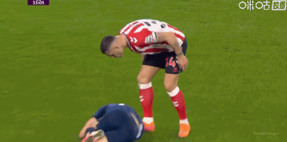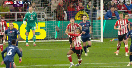 第34分鐘,紮卡被判犯規(guī),隨後欲找倒地的梅裡諾理論