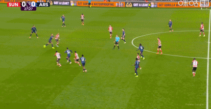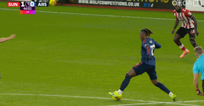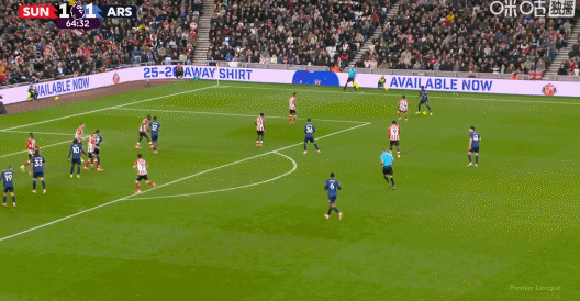 第53分鐘,蘇比門迪做球,薩卡跟進(jìn)打門偏出