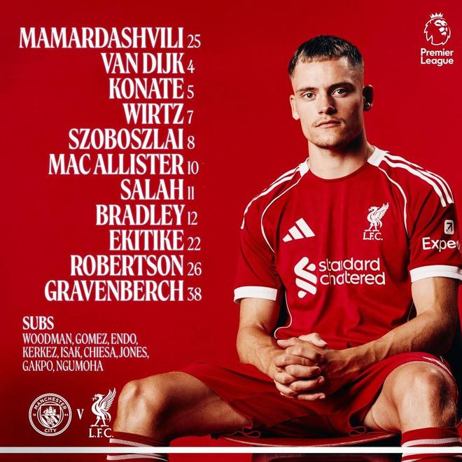 替補:28-伍德曼、2-喬-戈麥斯、3-遠藤航、6-凱爾凱茲、9-伊薩克、14-費代裡科-基耶薩、17-柯蒂斯-瓊斯、18-加克波、73-恩古莫哈