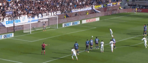 第29分鐘,皮納蒙蒂造點,貝拉爾迪主罰命中,薩索洛1-0亞特蘭大