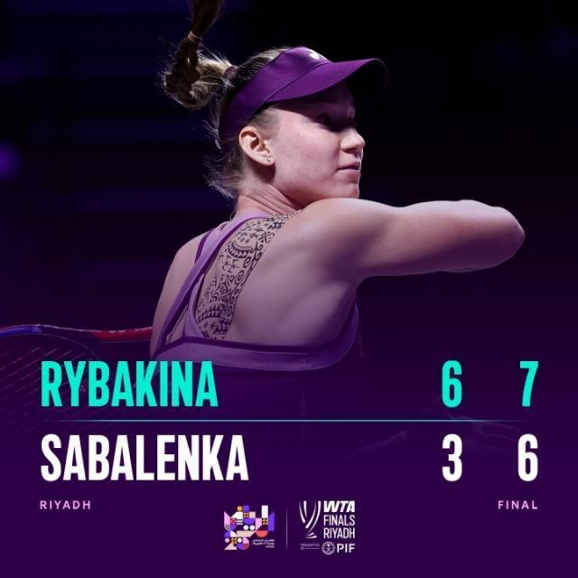 利雅得WTA年終總決賽單打決賽,萊巴金娜2比0戰(zhàn)勝薩巴倫卡,11連勝生涯首奪年終冠軍。萊巴金娜10月24號(hào)在WTA500東京站2-0戰(zhàn)勝姆博科,晉級(jí)四強(qiáng)并獲得年終總決賽席位,隨后她宣布因傷退賽。年終總決賽,萊巴金娜小組賽三戰(zhàn)全勝,半決賽2比1逆轉(zhuǎn)佩古拉,決賽2比0薩巴倫卡,以全勝戰(zhàn)績(jī)奪冠。萊巴金娜奪冠之路: