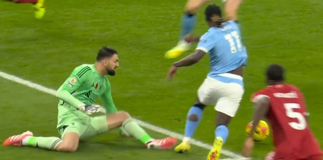 比賽的第8分鐘,利物浦後衛(wèi)失誤,多庫禁區(qū)內(nèi)斷球突破被馬馬達(dá)什維利絆倒,主裁判回看慢鏡頭之後判罰點(diǎn)球,哈蘭德主罰點(diǎn)球,被馬馬達(dá)什維利飛身封出。