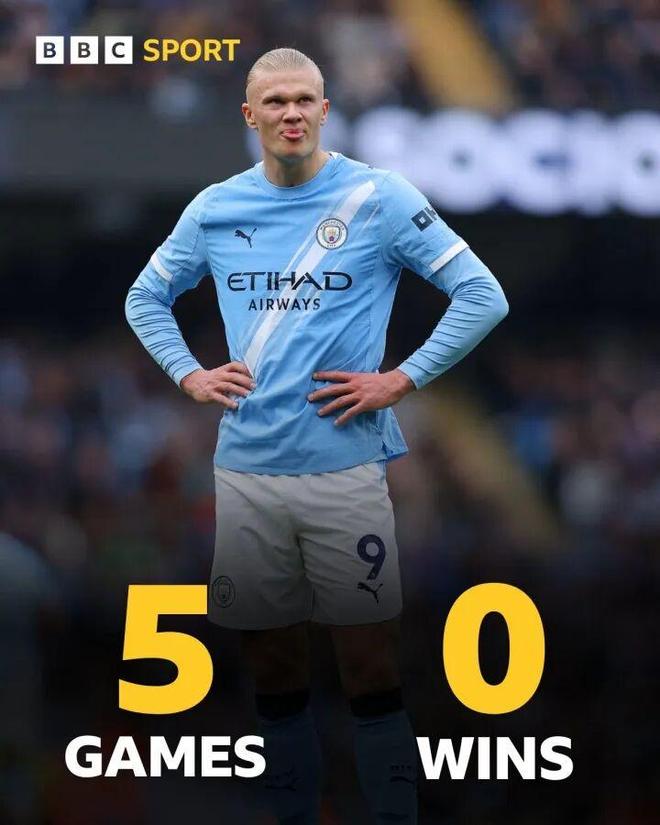 自2022年7月加盟曼城以來,哈蘭德已經(jīng)代表球隊5次首發(fā)對陣范戴克,但至今仍2平3負未嘗勝績。