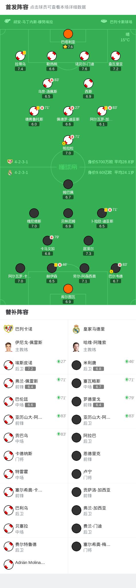 劍南春丨皇馬客場0-0巴列卡諾,比賽平淡,巴爾韋德傷退