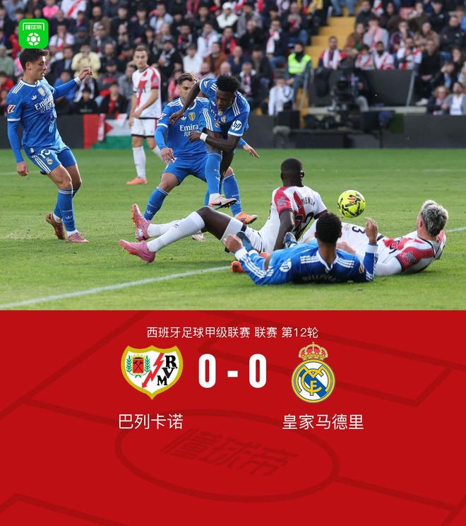 北京時(shí)間11月9日西班牙足球甲級(jí)聯(lián)賽 聯(lián)賽 第12輪,巴列卡諾主場對陣皇家馬德里。最終比分巴列卡諾 0-0 皇馬。