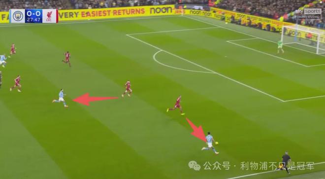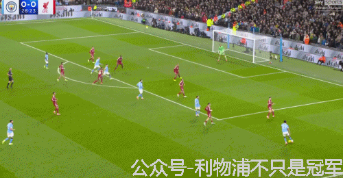 曼城27分50秒左右反擊到利物浦左路,由於盯防切爾基的羅伯遜被拉到中路,而曼城攻擊到利物浦左路時,左中衛(wèi)范迪克被迫補(bǔ)防到左後衛(wèi)位置,這是曼城本場針對利物浦的戰(zhàn)術(shù)之一,就是要讓范迪克離開利物浦中路!