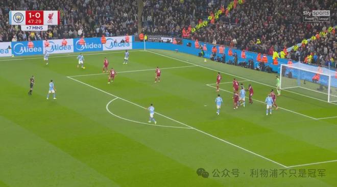 哈蘭德進(jìn)球的時間是28分30秒。在此前1分鐘,也就是27分30秒左右,利物浦還在前場逼搶,一度將曼城逼到自己的角球區(qū),但曼城球員通過連續(xù)短傳配合,輕松瓦解瞭利物浦的前場逼搶,並很快轉(zhuǎn)入反擊。