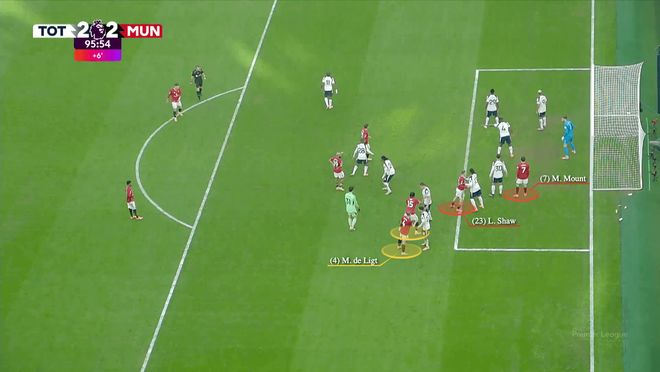在這個例子中,來自周六2-2戰(zhàn)平托特納姆熱刺的比賽,在馬奎爾被換下以及熱刺打入兩球後,德利赫特的角色從阻擋者變成瞭攻擊目標(biāo)之一。