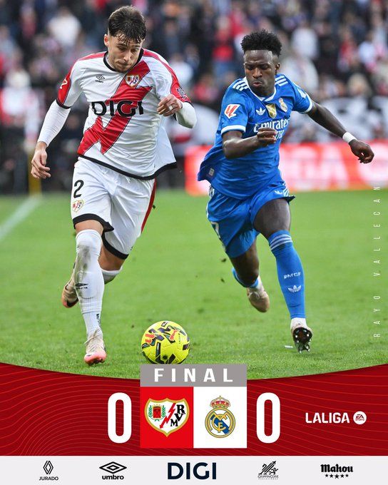 北京時(shí)間11月9日23:15,西甲聯(lián)賽第12輪,巴列卡諾主場迎戰(zhàn)皇馬。上半場維尼修斯、勞爾-阿森西奧失良機(jī),兩隊(duì)暫0-0戰(zhàn)平;下半場兩隊(duì)也都沒能改寫比分,最終皇馬0-0巴列卡諾,聯(lián)賽四連勝終結(jié)。