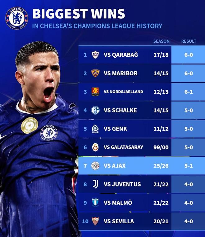 5-1戰(zhàn)勝阿賈克斯,切爾西贏得隊史歐冠單場第7大比分勝利