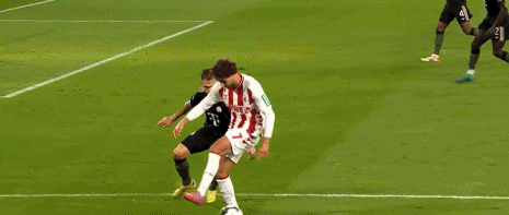 第28分鐘,球衣壞掉,奧利塞主罰角球前更換球衣