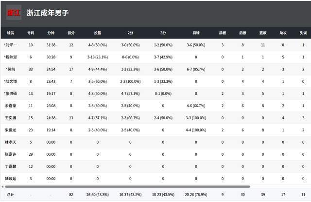 從數(shù)據(jù)來看,浙江隊僅用瞭8人輪轉(zhuǎn),丁偉擺明瞭要拿下勝利的,8人都有得分入賬,3人得分上雙,劉澤一12分11籃板,吳前17分2籃板3助攻,王奕博13分4助攻。