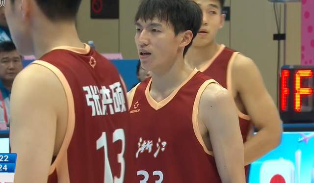 比賽開始,劉澤希上來就扔進(jìn)3分,但隨後兩隊哐哐打鐵,打瞭快3分鐘瞭,浙江隊才憑借劉澤一2罰1中,拿到第一分。兩隊之後戰(zhàn)成3比3平、5-5平、7-7平、9-9平。憑借程帥澎的3分和劉澤一的進(jìn)球,首節(jié)戰(zhàn)罷,浙江隊14-11領(lǐng)先3分。