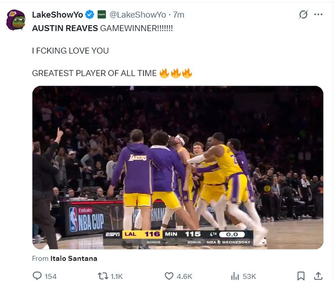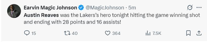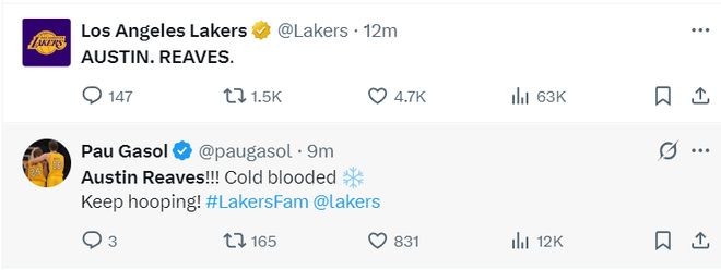 湖人官方發(fā)瞭一個(gè)奧斯汀-裡夫斯的名字。