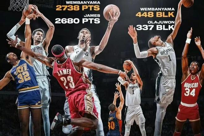 而文班亞馬目前已經(jīng)打完瞭個人職業(yè)生涯前120場比賽,前120場的總得分2738分,超過瞭詹姆斯的2680分;總?cè)置袛?shù)274記,超過瞭庫裡的242記;總封蓋數(shù)448次,超過瞭奧拉朱旺的337次;總籃板數(shù)1301個,超過瞭馬龍得分1091個。