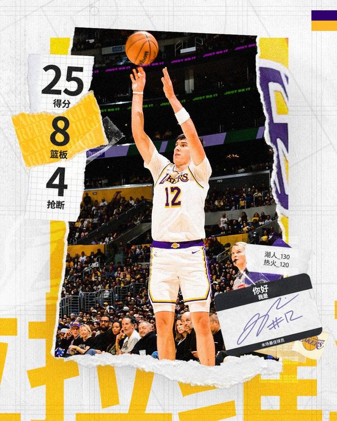 東契奇引領(lǐng)湖人6人得分上雙戰(zhàn)勝熱火,外加裡夫斯26分11助攻,他們組成強(qiáng)力後場(chǎng)雙槍。至於拉拉維亞打出加盟湖人最強(qiáng)一戰(zhàn),他13中10高效得到25分8籃板3助攻。
