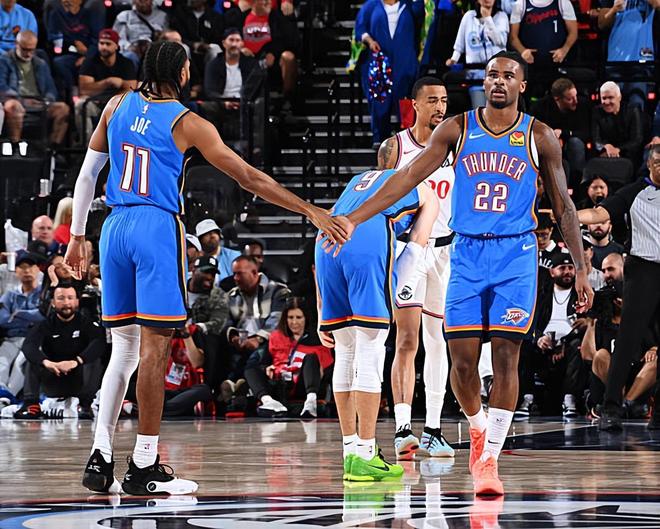 本場比賽中,雷霆的替補外線投射以賽亞-喬(Isaiah Joe)依然是保持瞭極好的手感。喬全場出場21分25秒,投籃12中7,三分線外10中6,罰球2中2,以超高的效率拿下瞭全隊第二高分22分外加3籃板的數(shù)據(jù),還有1次失誤和2次犯規(guī),正負值為+7。喬在比賽中將自己超強的投射能力發(fā)揮瞭出來,他在與謝伊-吉爾傑斯·亞歷山大(Shai Gilgeous-Alexander)完成擋拆後可以利用後者的防守吸引力為自己爭取到足夠的出手空間,隨後他也能夠利用自己超強的投射能力給對手制造精準打擊。喬在場上的效果算得上是相當不錯,他靠著類似的方式拿下瞭大量的分數(shù)並且給球隊在進攻端制造瞭大量的威脅,他的強勢表現(xiàn)也是為球隊的勝利做出瞭自己的貢獻。