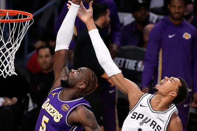 不僅如此,今天在防守端,東契奇也是異常賣(mài)力。不過(guò)下半場(chǎng),風(fēng)雲(yún)突變,倒不是兩隊(duì)哪一方爆發(fā),而是裁判發(fā)力,連續(xù)吹罰湖人隊(duì)犯規(guī),單節(jié)16-2的罰球差,讓湖人球迷直呼難繃。不過(guò),出乎意料的是,即便如此湖人也沒(méi)有崩盤(pán)。一直到末節(jié),兩隊(duì)的比分都很膠著。所以兩隊(duì)的對(duì)抗愈發(fā)強(qiáng)烈,裁判的腮幫子都快吹炸瞭。前面八村塁被文班亞馬單節(jié)連續(xù)造瞭三次犯規(guī),很快,八村塁又造瞭文班亞馬第六次犯規(guī),後者犯滿下場(chǎng)。這麼一來(lái),馬刺隊(duì)的索漢、文班亞馬、巴恩斯全部被罰出場(chǎng),這是馬刺隊(duì)28年來(lái)頭一次單場(chǎng)3人被罰出場(chǎng)。