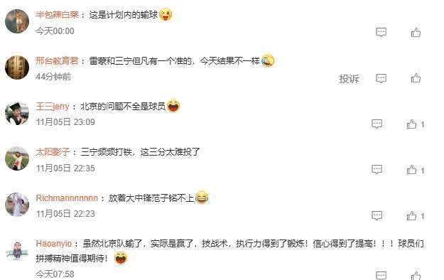 此番北京隊(duì)以88-97爆冷不敵天津隊(duì)之後,球迷們也是哪壺不開(kāi)提哪壺,“又是計(jì)劃內(nèi)輸球?”“北京的問(wèn)題不全是球員”、“雖然北京隊(duì)輸瞭,實(shí)際是贏瞭,技戰(zhàn)術(shù),執(zhí)行力得到瞭鍛煉!信心得到瞭提高!球員們拼搏精神值得期待!”各位朋友,你對(duì)許利民的臨場(chǎng)指揮怎麼看?歡迎留言。