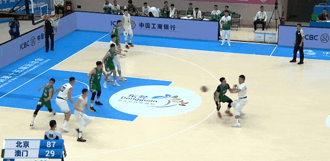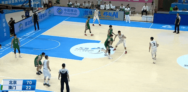 比賽第三節(jié),隨著方碩拋投命中,北京男籃已經(jīng)以89-29領(lǐng)先中國澳門60分之多。