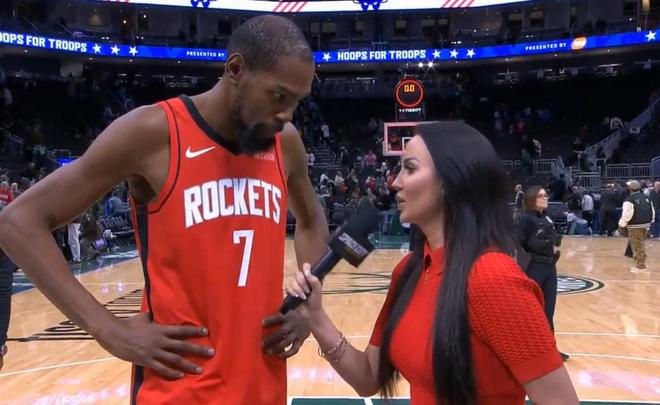 北京時(shí)間今日,在NBA常規(guī)賽中,火箭隊(duì)在客場(chǎng)以122-115擊敗瞭雄鹿隊(duì)。賽後,火箭球星杜蘭特接受瞭采訪。