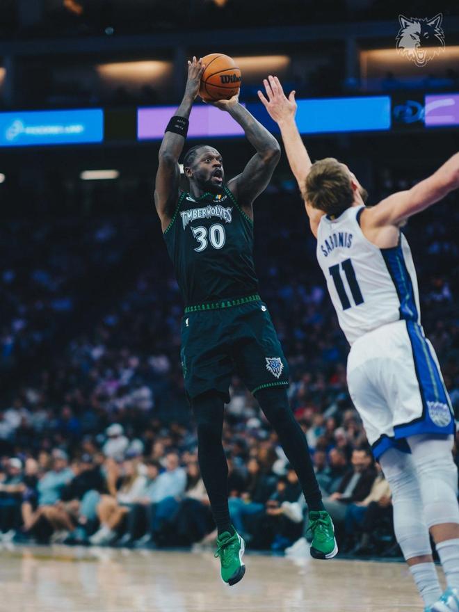 森林狼隊(duì),麥克丹尼爾斯10中8轟下瞭21分5板3助2帽、裡德14中5,三分球9中3得到13分4板2助2斷、克拉克11分2板1助、迪林厄姆11分3助、迪文琴佐7中2,三分球6中1得到8分4板4助2斷、康利6分3板3助、海蘭德4分1板、朱贊2分2板。