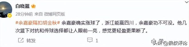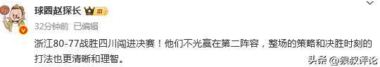 媒體人"趙探長(zhǎng)"發(fā)文點(diǎn)評(píng)“浙江80-77戰(zhàn)勝四川闖進(jìn)決賽!他們不光贏在第二陣容,整場(chǎng)的策略和決勝時(shí)刻的打法也更清晰和理智。”