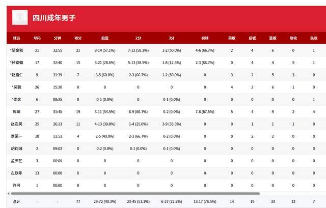 在浙江隊(duì)強(qiáng)大的防守下,周琦11投6中,隻拿到19分9籃板,胡金秋14投8中,拿到21分6籃板,孫銘徽21投6中,拿到15分4籃板5助攻,趙巖昊13投4中,拿到11分。