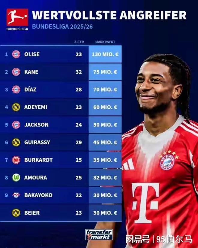 (德甲進(jìn)攻球員中身價(jià)排第7)