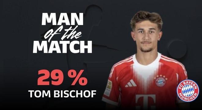 德甲第9輪,拜仁慕尼黑主場3-0大勝勒沃庫森,此役送出一次助攻的比朔夫當(dāng)選德甲官方全場最佳球員。