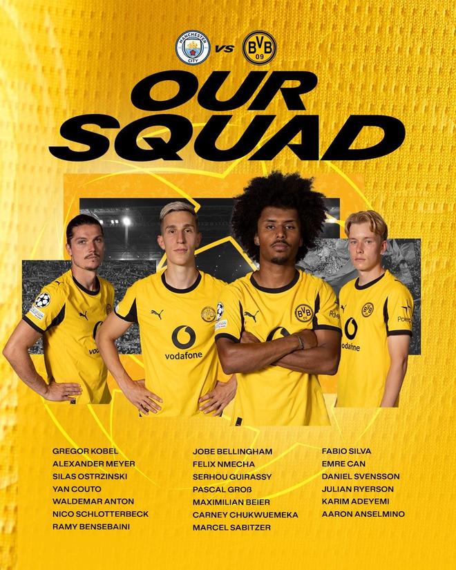 歐冠第4輪,多特蒙德將客場對陣曼城。多特蒙德于當?shù)貢r間11月4日下午飛往英國,在出征前大黃蜂公布了球隊大名單。