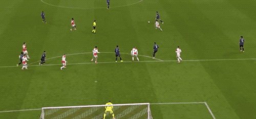 第23分鐘,接到賴斯的直塞,薩卡高速插上,抵住防守球員小角度射門,門將穩(wěn)穩(wěn)將球擋出。