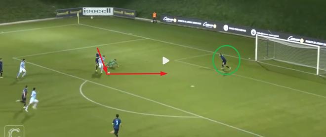 第83分鐘,中路貝倫佈魯赫持球一路梅西式狂奔,面對多人包夾將球分給右路後插上的、剛剛上場首次觸球的阿博尼福,後者在無人幹擾的情況下傳出一記讓狗哥驚掉下巴的傳中球,精準找到中路包抄、同樣是剛剛上場的托帕洛維奇,後者頭錘攻門送出國際米蘭U23本場比賽的第二腳射正球門范圍內的射門,並將比分成功反超!